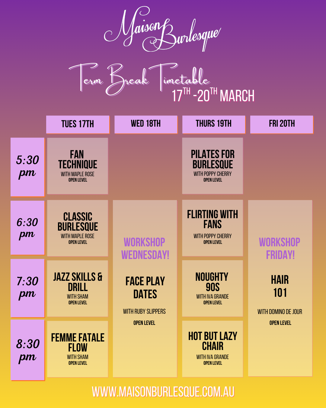 ❤️🔥Term Break Casual Classes at Maison Burlesque❤️🔥